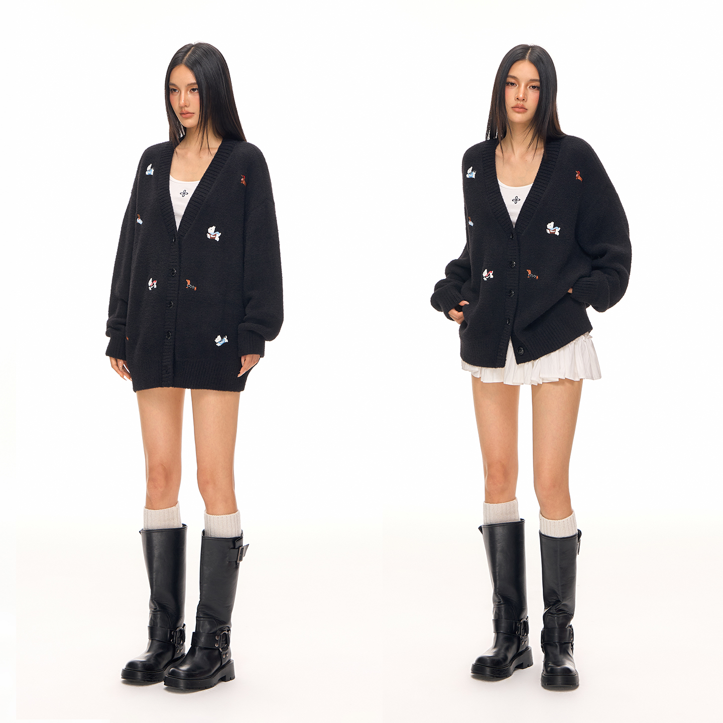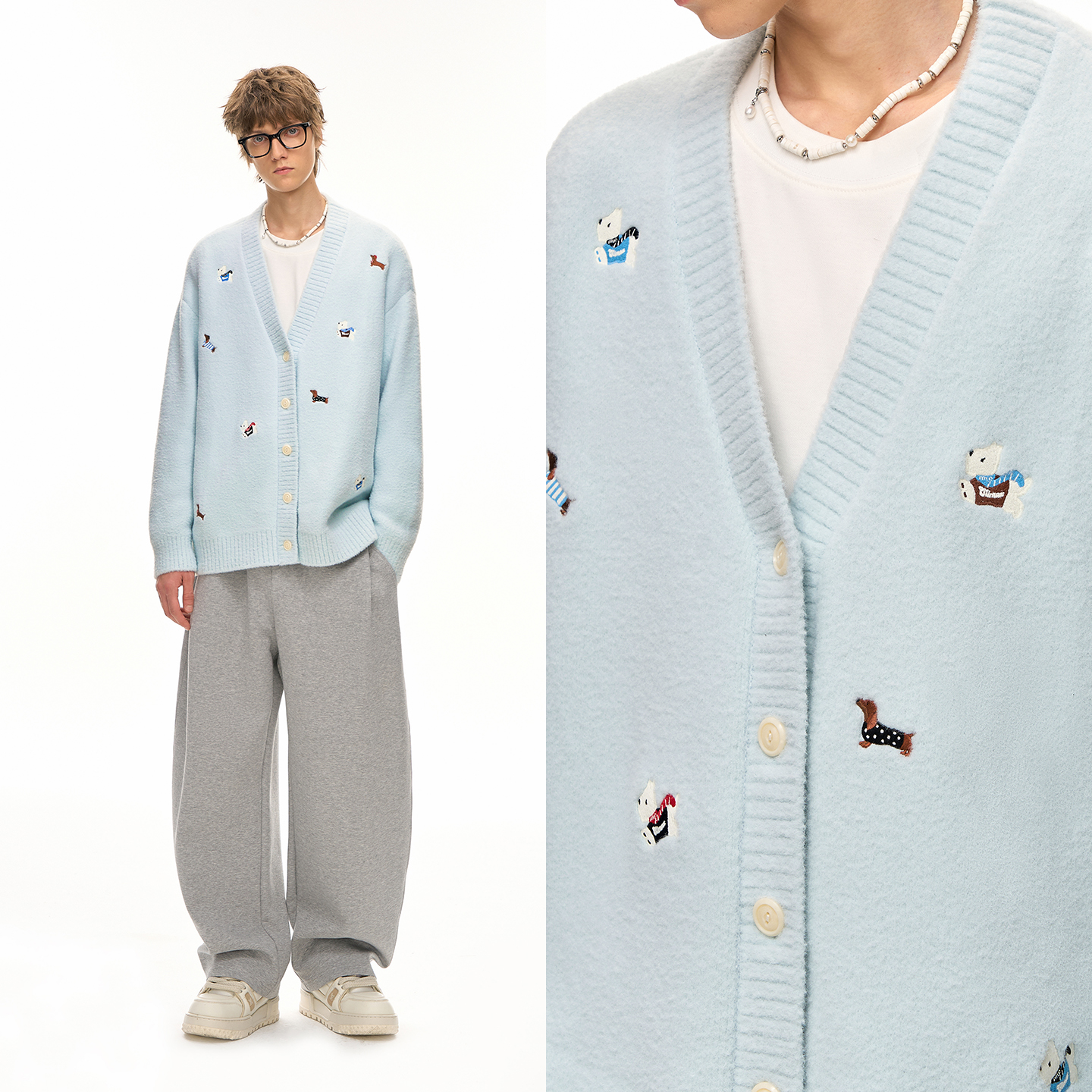 慵懒风腊肠狗刺绣针织毛衣开衫 CLIMAX VISION亲肤柔软仿驼绒纱线