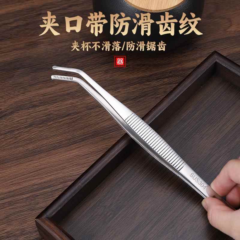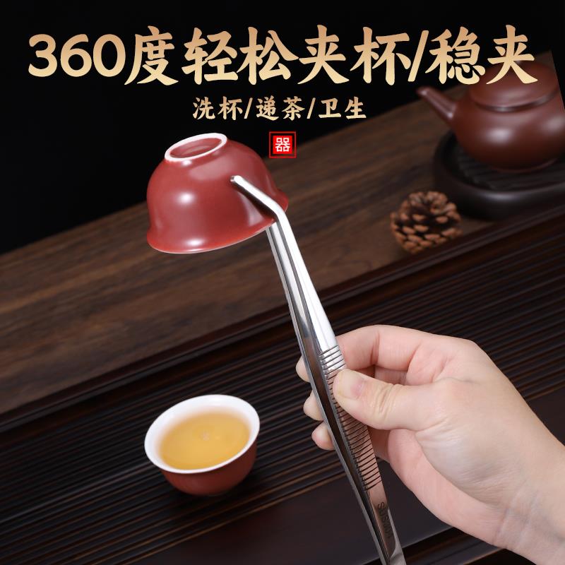 功夫茶夹子镊子加厚不锈钢304茶夹具茶道配件茶杯金属洗杯茶夹子