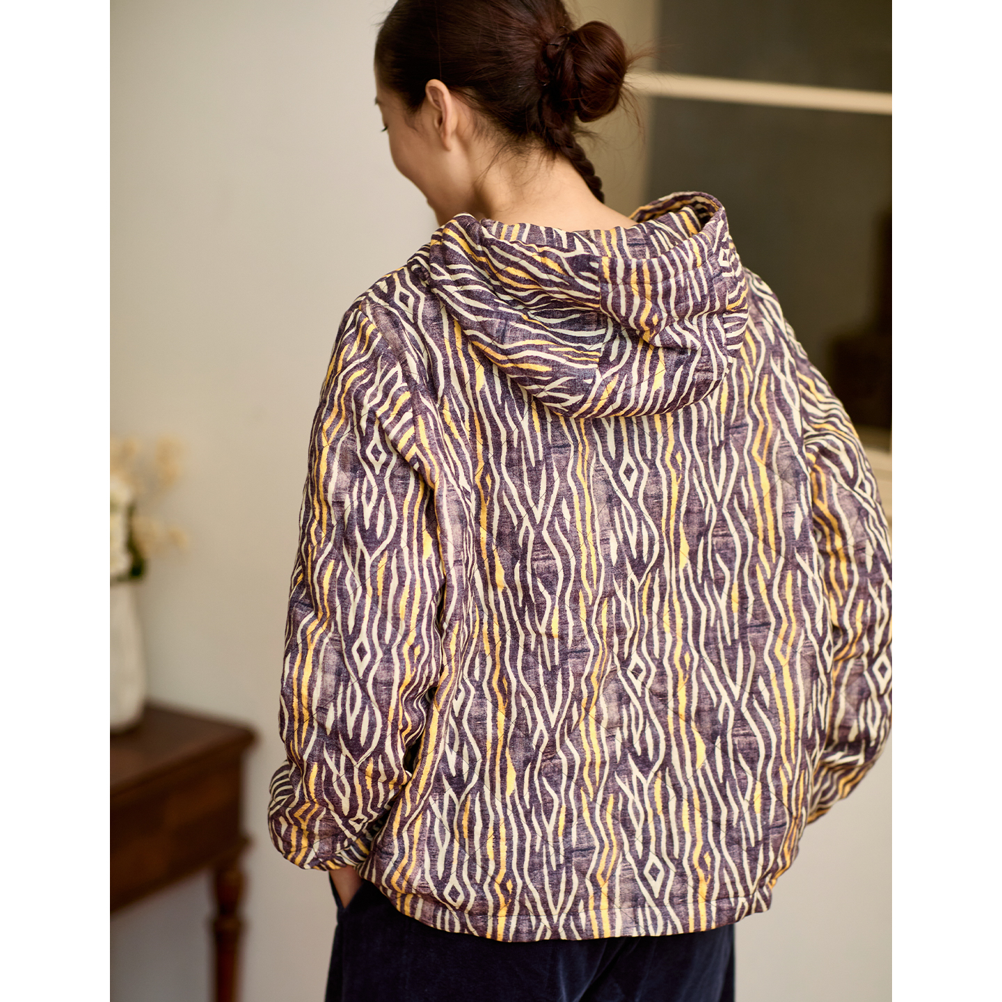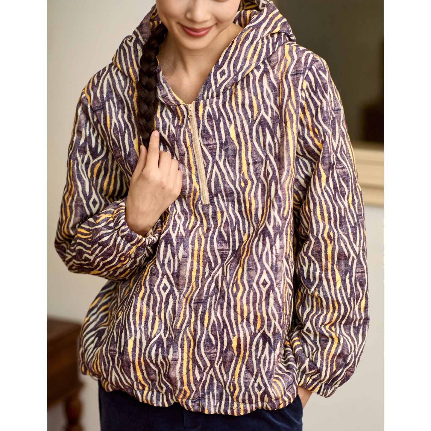 844715 蕾丝杠条棉衣立领宽松棉袄外套女装 三福棉服女2025新款 冬季
