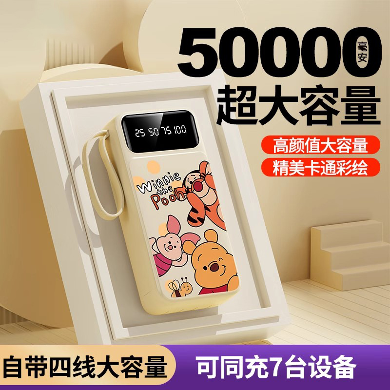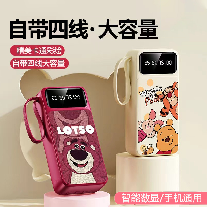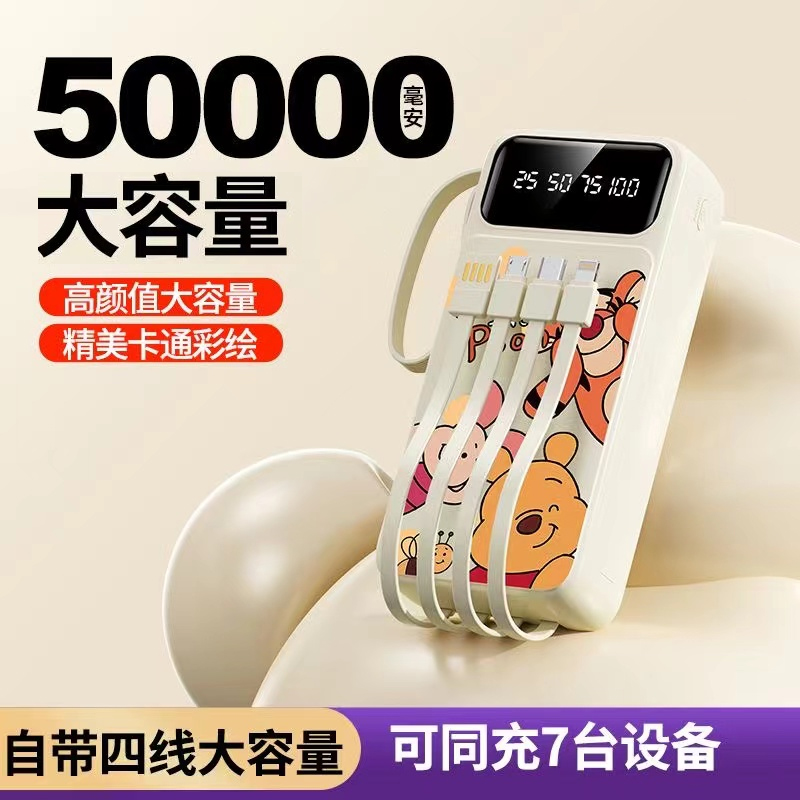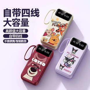 3C认证正品 自带线充电宝超薄小巧便携迷你快充50000毫安超大容量2万移动电源可爱适用oppo苹果vivo手机专用