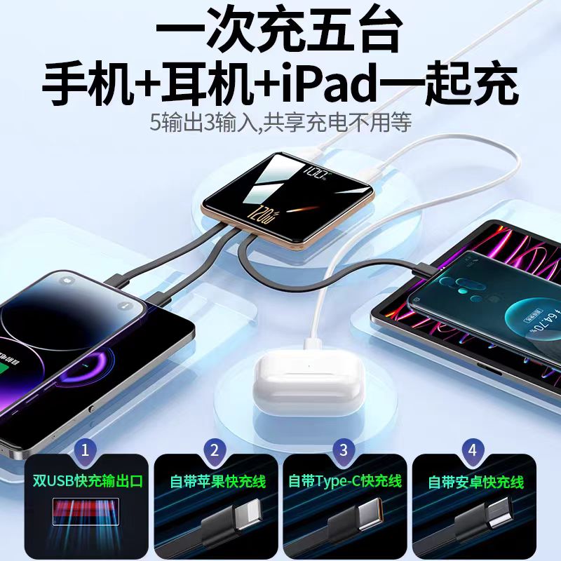 新国标3c认证可上飞机官方旗舰店正品 充电宝超大容量20000毫安自带线超薄小巧便携超级快充移动电源手机通用