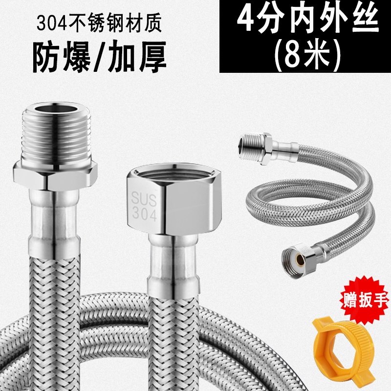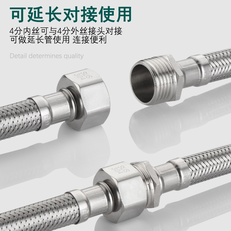 4分内外丝进水软管龙头热水器马桶冷热加长接延长管304不锈钢防爆
