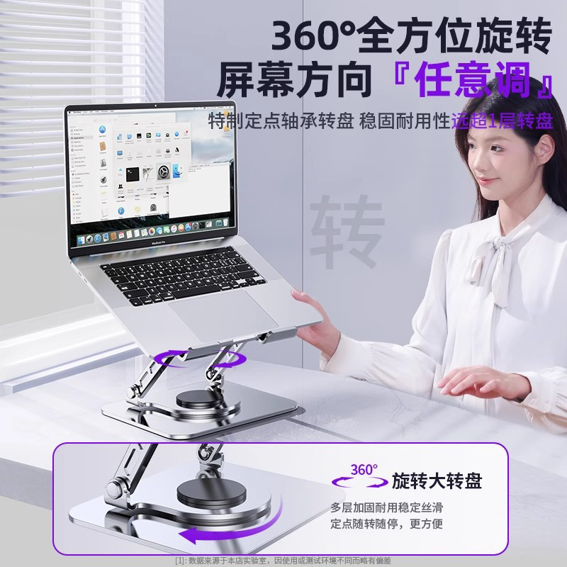 笔记本电脑支架360度可旋转桌面支撑架游戏本码 平板散热底座金属合金可调节打字不晃 字增高架悬空立式