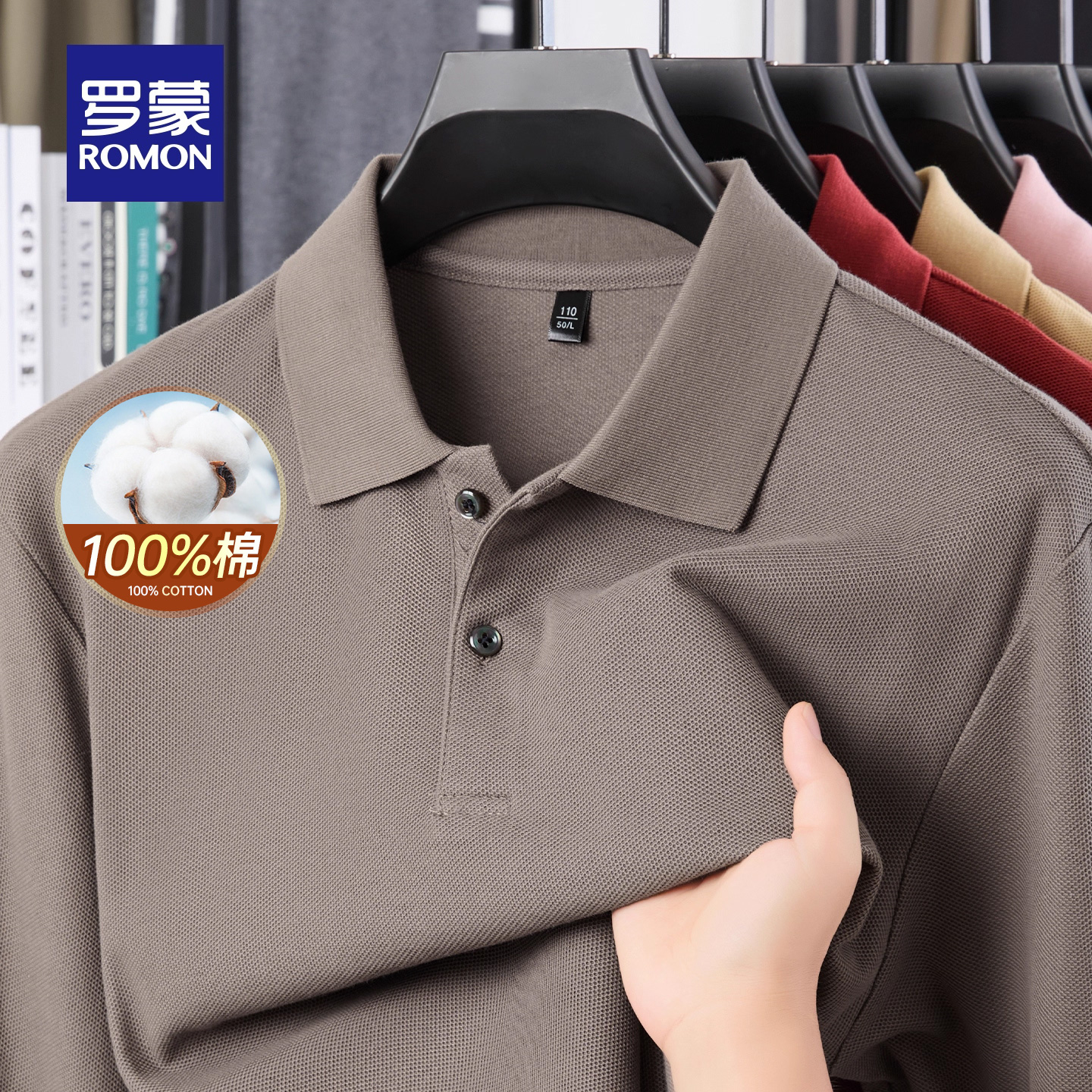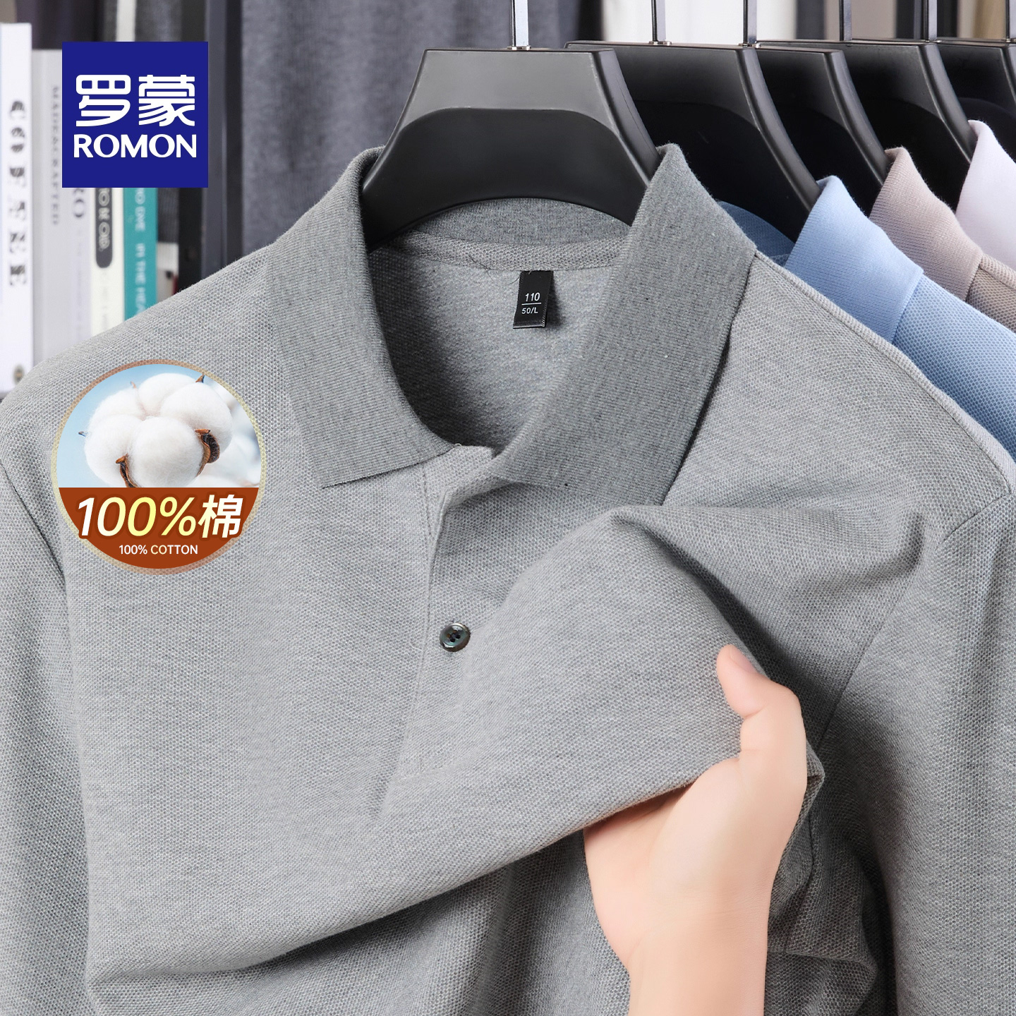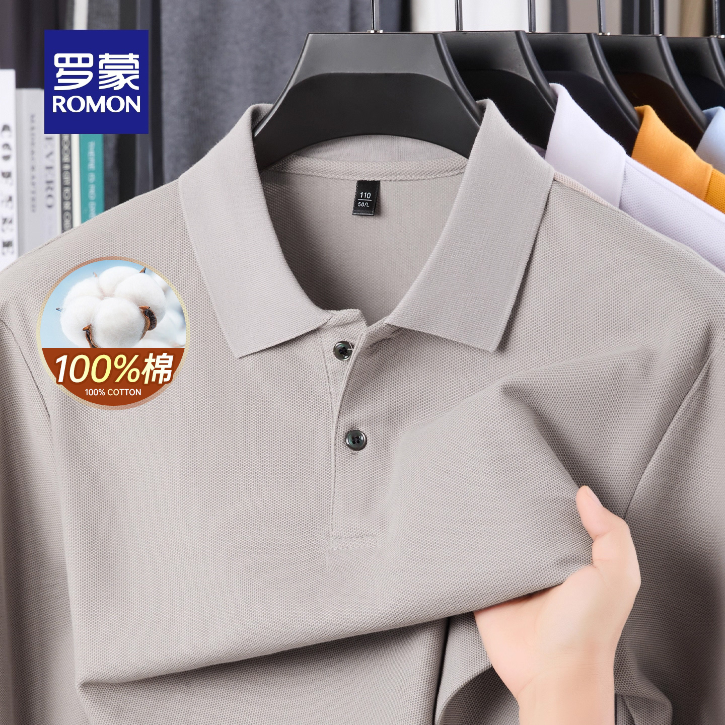 商务长袖 罗蒙男士 POLO衫 2025秋季 宽松纯色翻领T恤衫 新款 纯棉