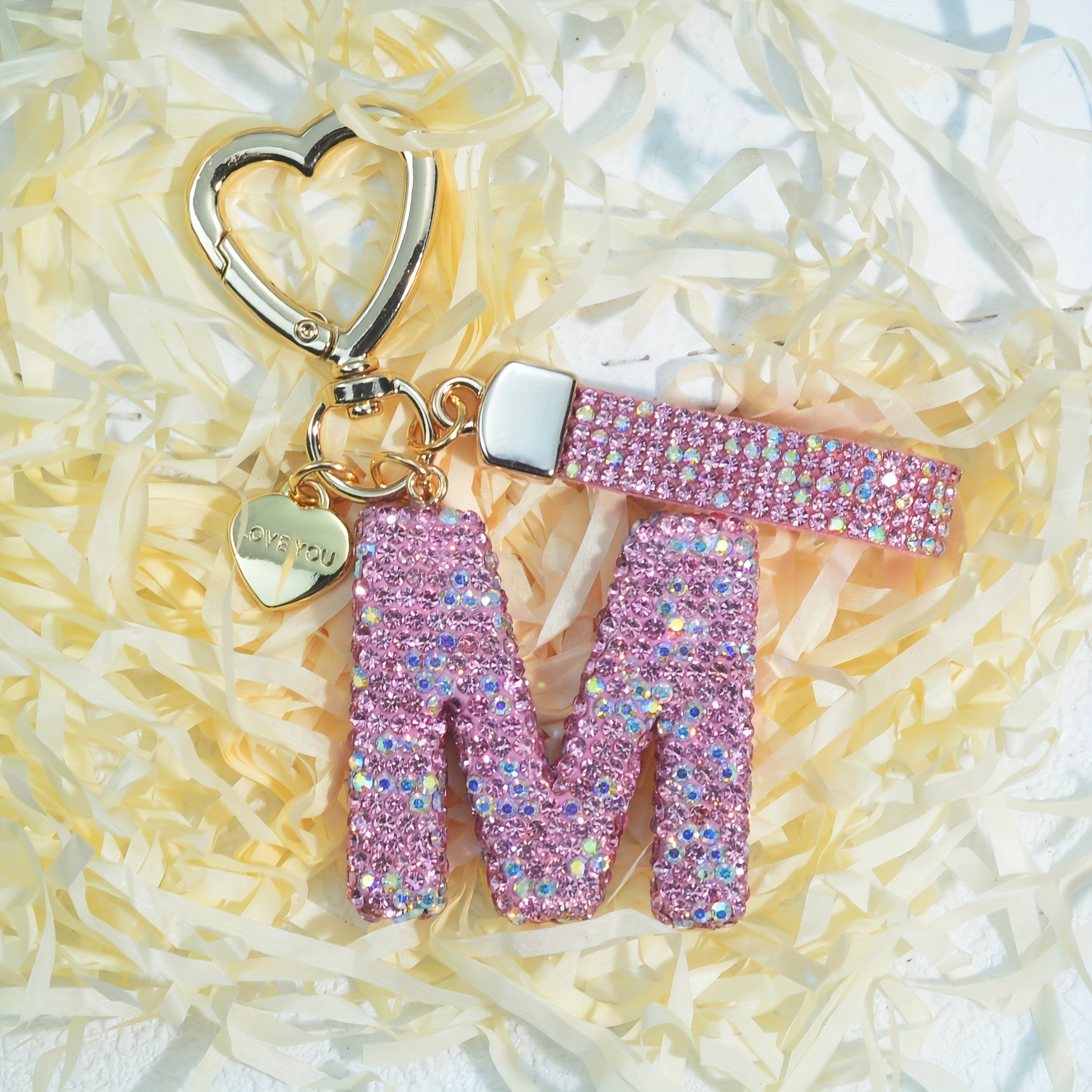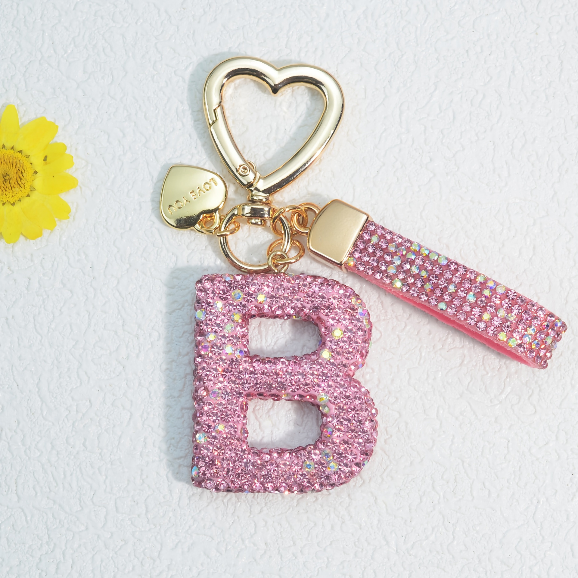 英文字母汽车载钥匙扣姓名首字母镶钻缩写装 饰用品吊坠26y创意l女