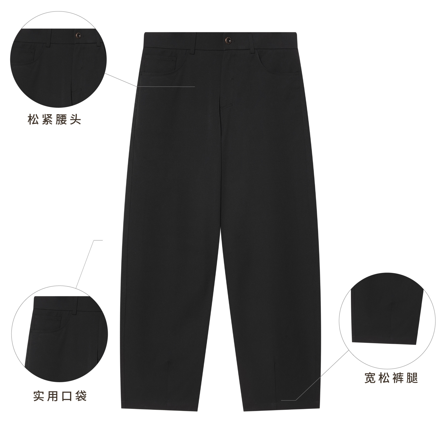 女春秋新款 休闲直筒慵懒松弛感裤 高腰垂感窄版 裤 子 西装 黑色阔腿裤