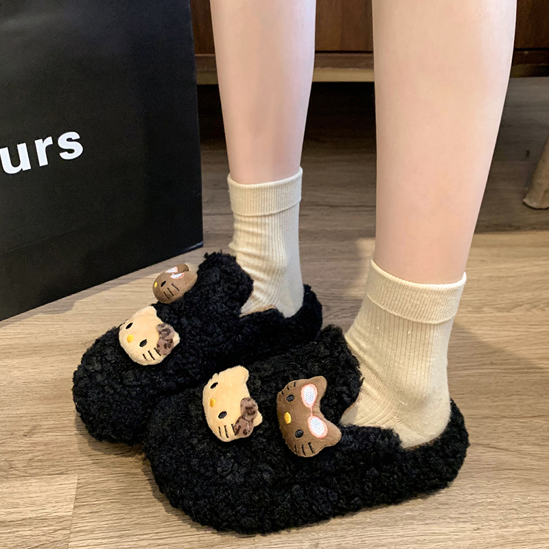 毛毛绒室内家居保暖鞋 厚底防滑2025新款 子居家 女士秋冬季 棉拖鞋
