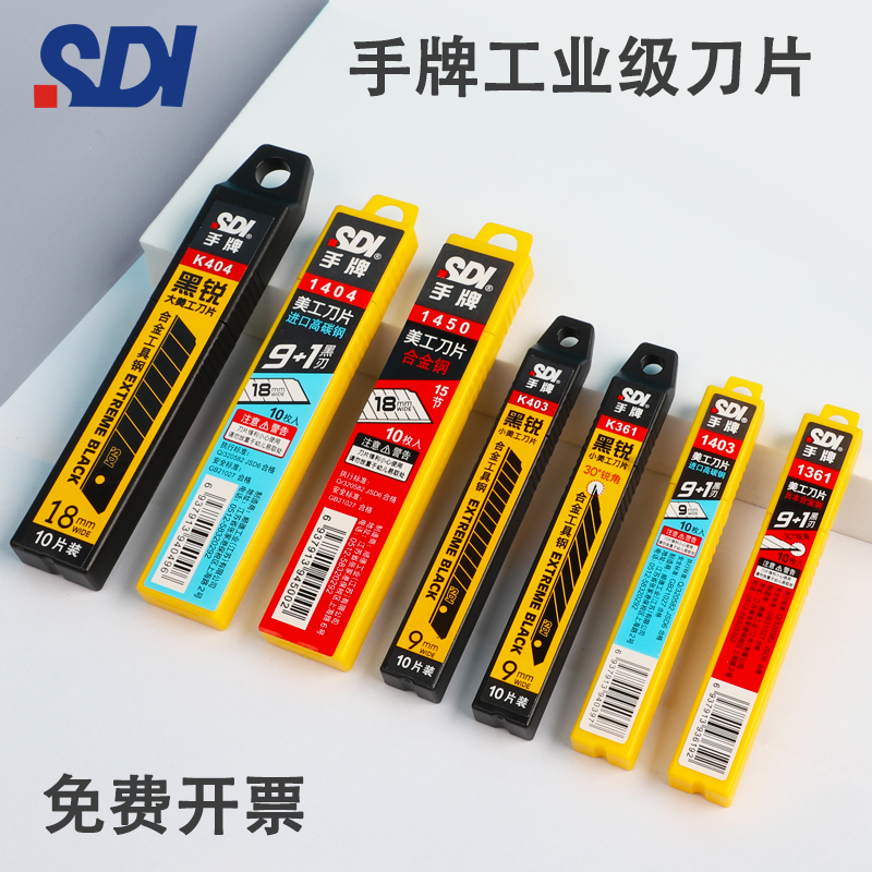sdi手牌美工刀片批发小号1361汽车贴膜刀片正品 1403n大号裁纸壁纸刀片工业用黑刃k361