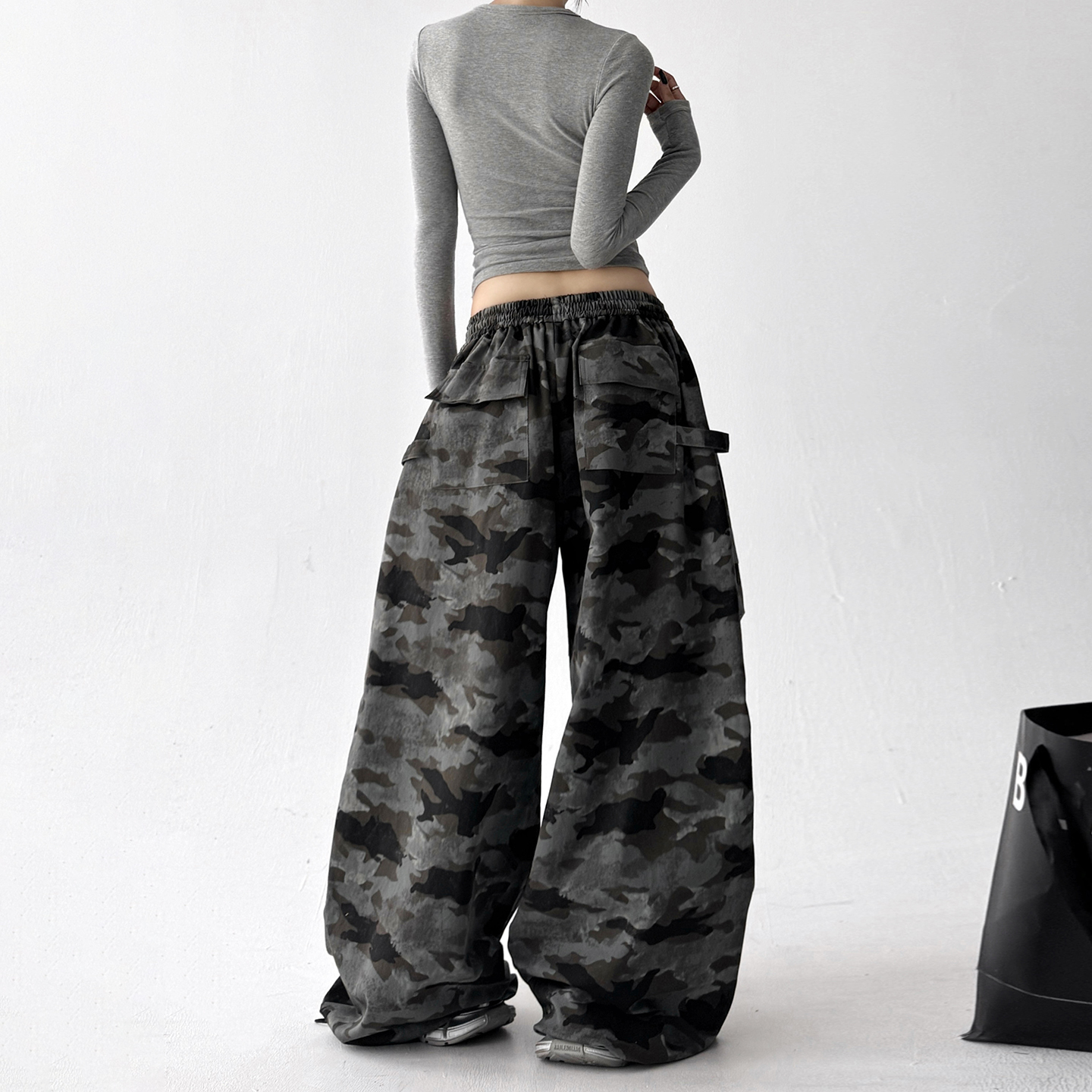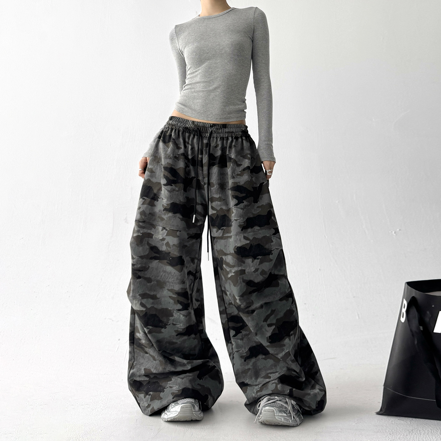 宽松高个子别致休闲阔腿裤 新款 女2025超火秋装 潮流街舞垂感迷彩裤