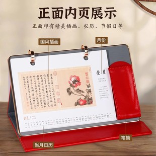 皮质2026年台历定制精美马年定做皮面日历记事月历工作计划本定制LOGO商务订制办公桌面摆件文创意中国风订做