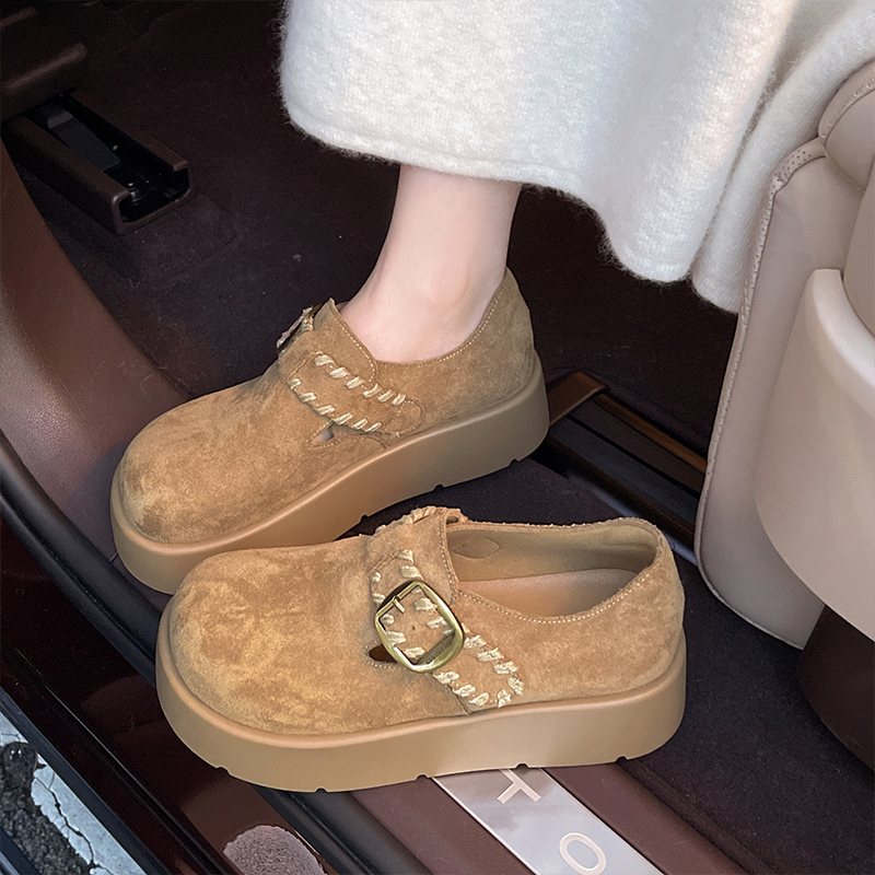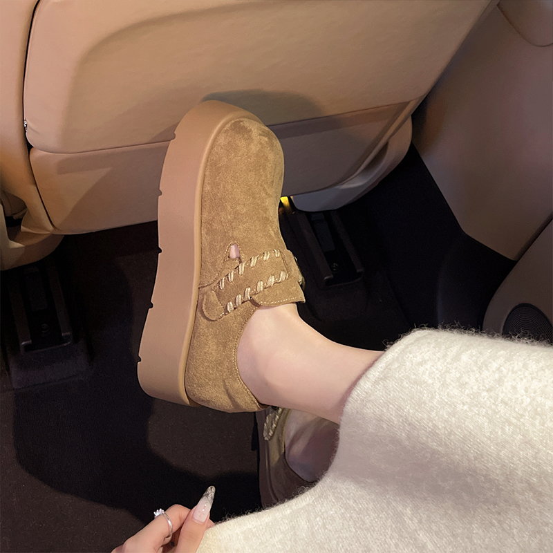 女鞋 博肯单鞋 子2025秋季 一脚蹬乐福鞋 新款 真皮厚底增高全包勃肯鞋