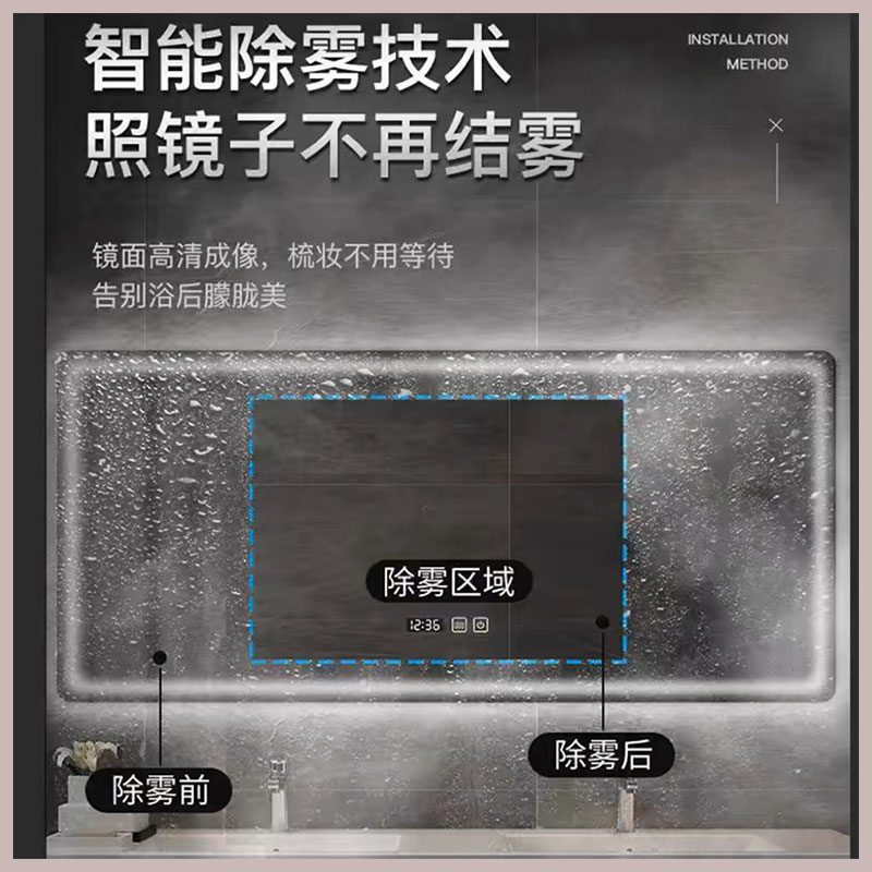 智能浴室镜蓝牙款 家用洗手卫生间镜子防雾厕所定制 屏led灯挂墙式