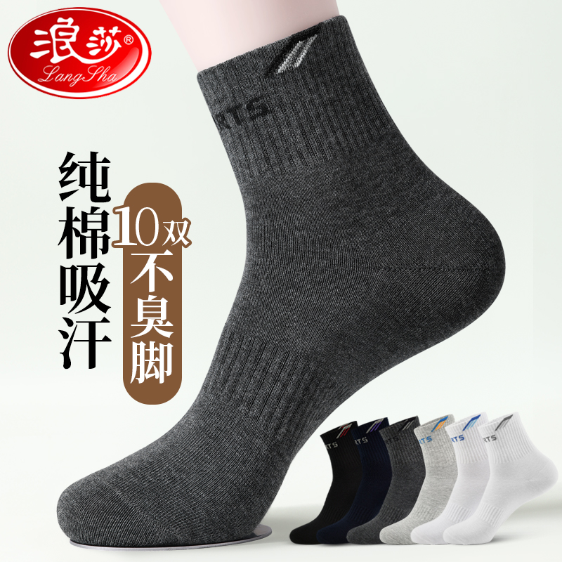 运动全棉男袜春秋 厚款 浪莎袜子男士 短袜纯棉防臭吸汗中筒棉袜冬季