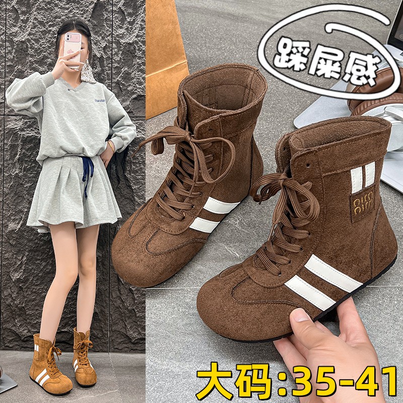 达芙妮棕色马丁靴女2025新款 美拉德靴子加绒德训短靴 拳击靴秋冬季