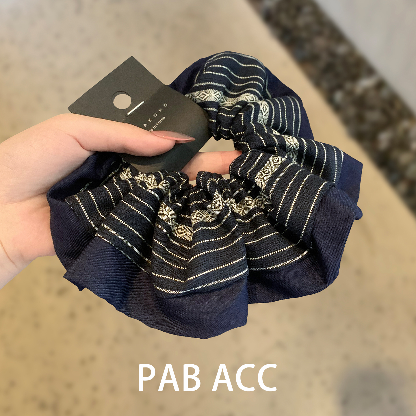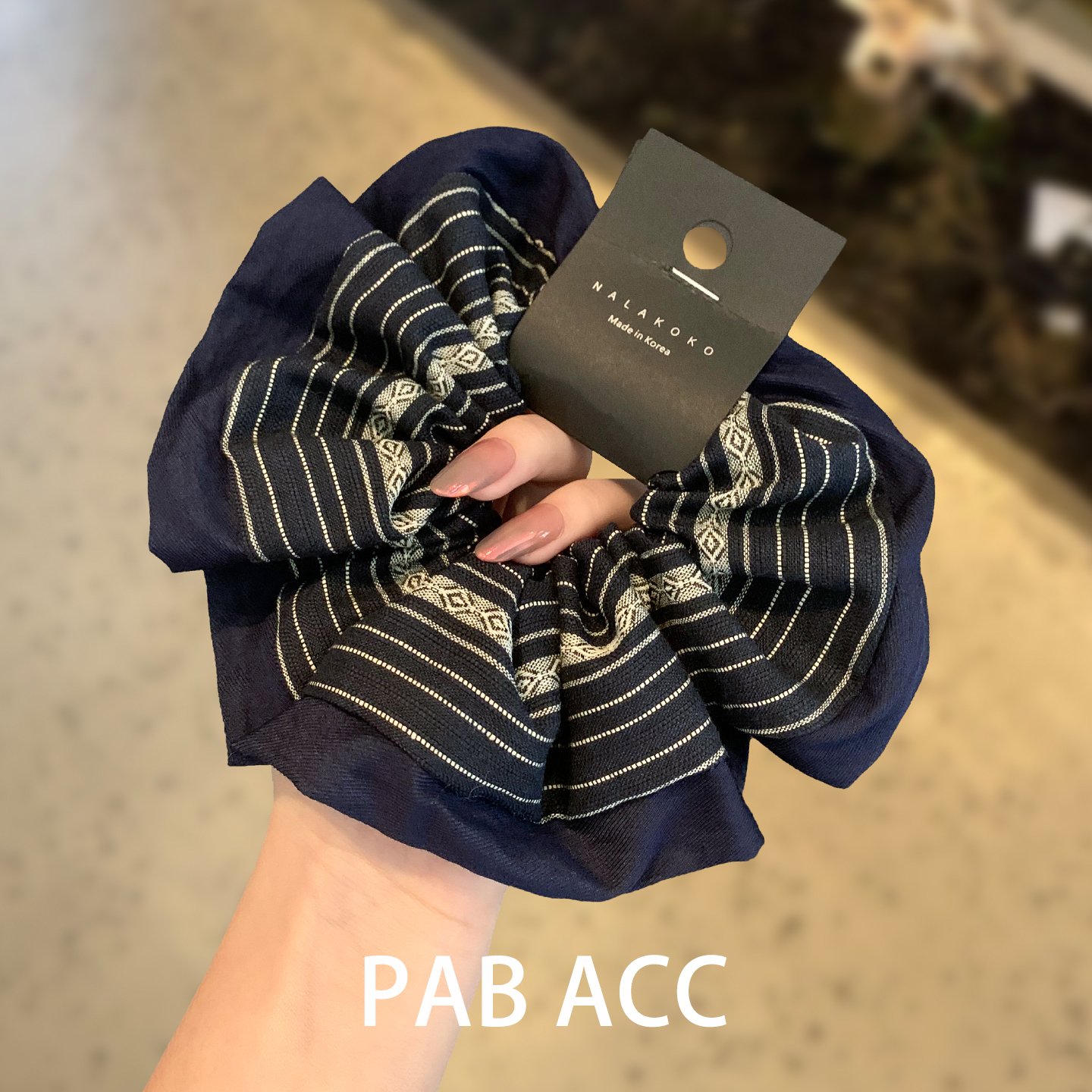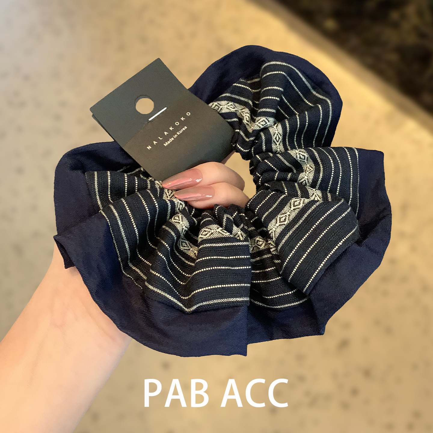 韩国小众新款 高端设计感布艺条纹花边肥肠圈丸子头低马尾皮筋发圈