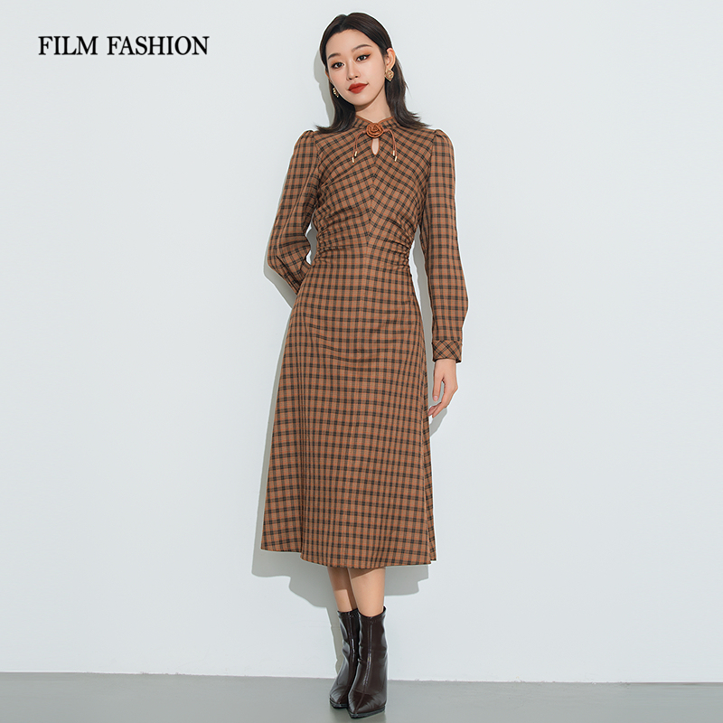 菲梦伊原创钉珠提花连衣裙女秋季 国风高端气质贵妇旗袍裙子 新中式
