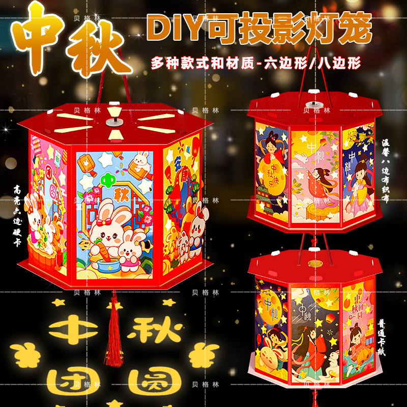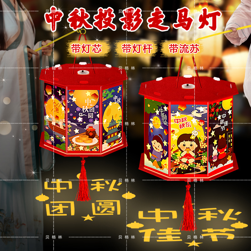 中秋推荐 中秋发光投影灯笼手提走马花灯diy实验 升级投影灯笼