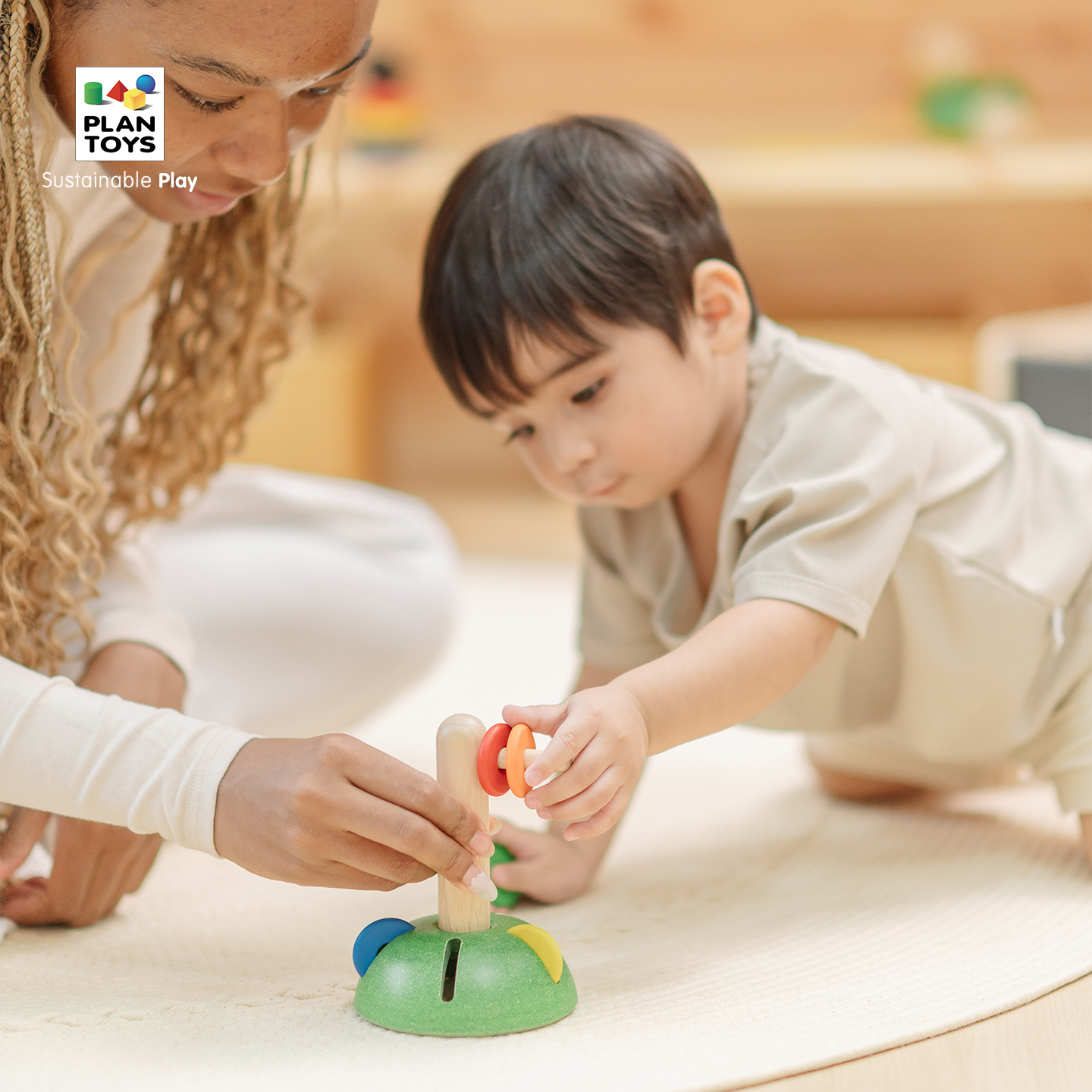 plantoys儿童益智套环叠叠乐精细动作训练蒙氏教育玩具木质玩具