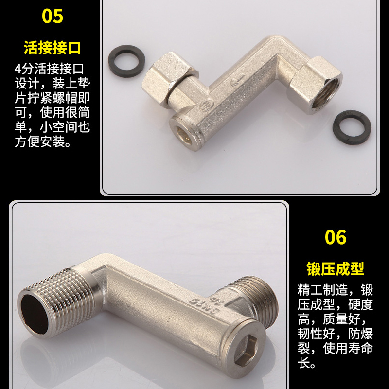 不锈钢4分转6分三角阀四分螺纹口转接头内外丝水龙头304配件大全