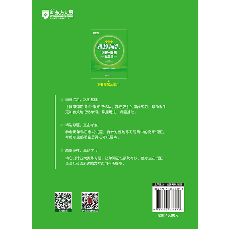 雅思词汇词根 IELTS同步学练测英语练习 联想记忆法:乱序版 新东方绿宝书同步训练 俞敏洪书籍 学练测 当当网新东方