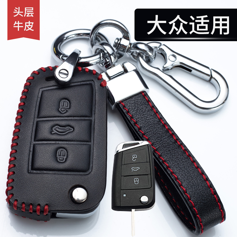 适用于大众新朗逸凌渡途观捷达宝来帕萨特速腾汽车真皮钥匙包套扣