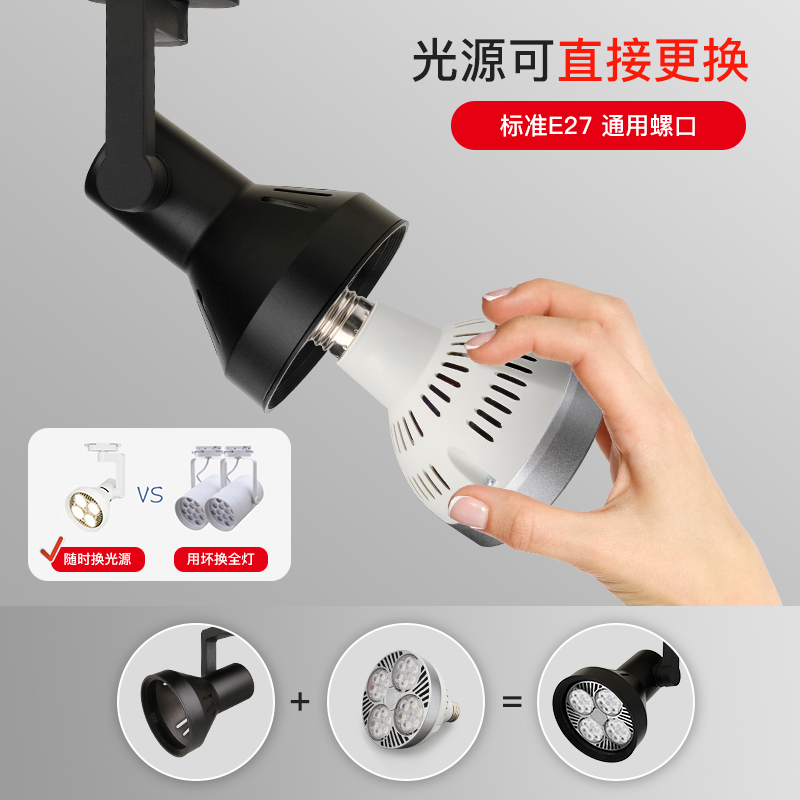 LED轨道灯35W40W50WPAR30灯泡灯杯服装 店射灯商场E27螺口导轨光源