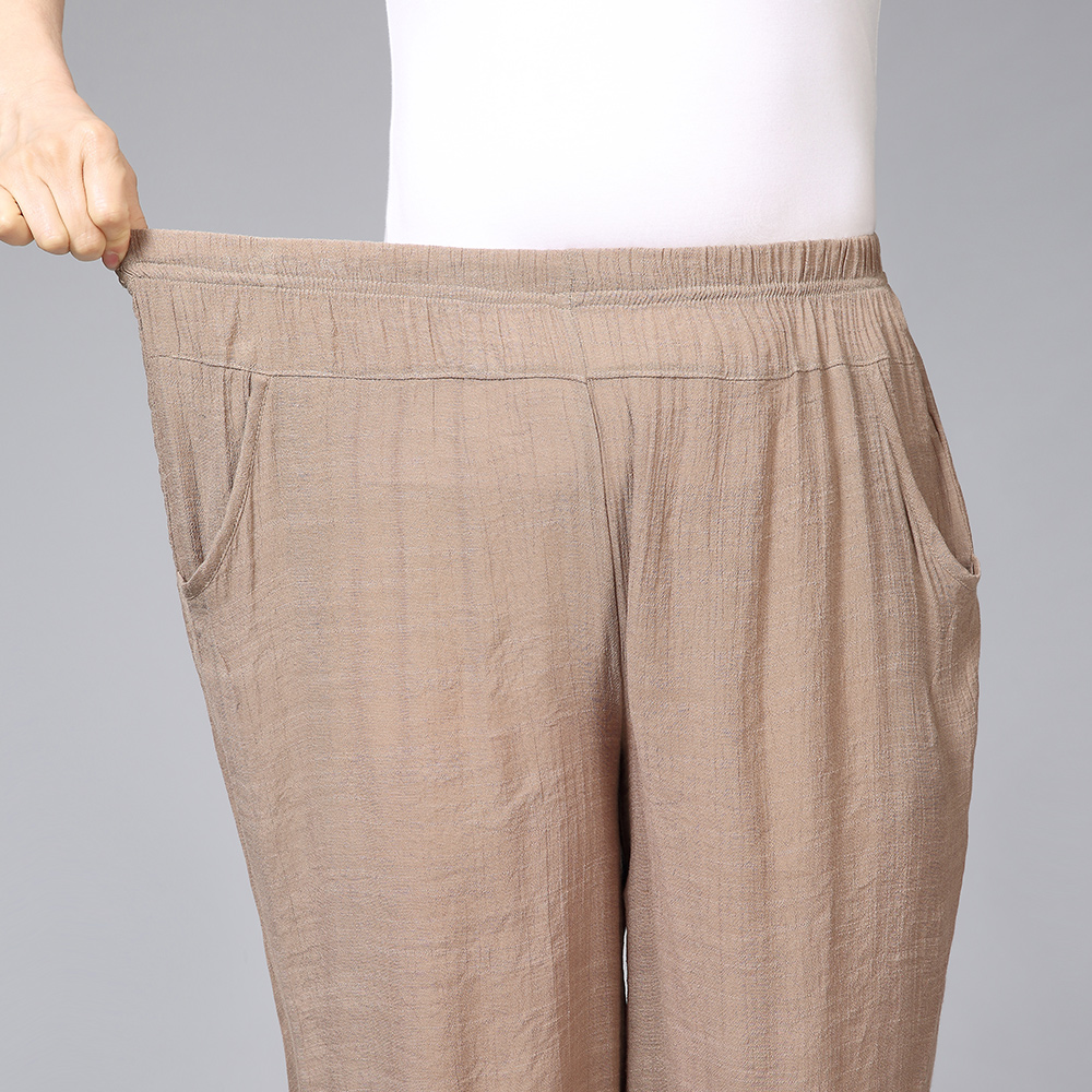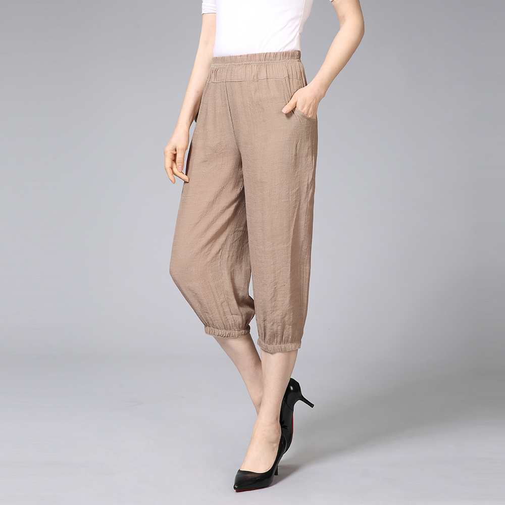 高腰清凉薄款 夏季 新款 2020中老年时尚 舒适Q7 宽松纯色七分收脚女裤