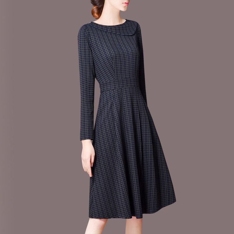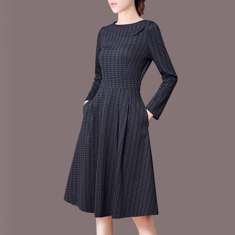 通勤复古中长打底A字裙A135 格子连衣裙女春季 尘埃之家2025春装 款