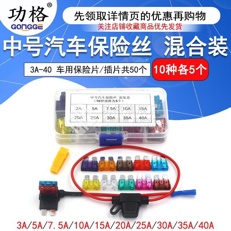 汽车保险丝插片20A 中号 15A 35A40A 汽车保险管 10A 氙气灯