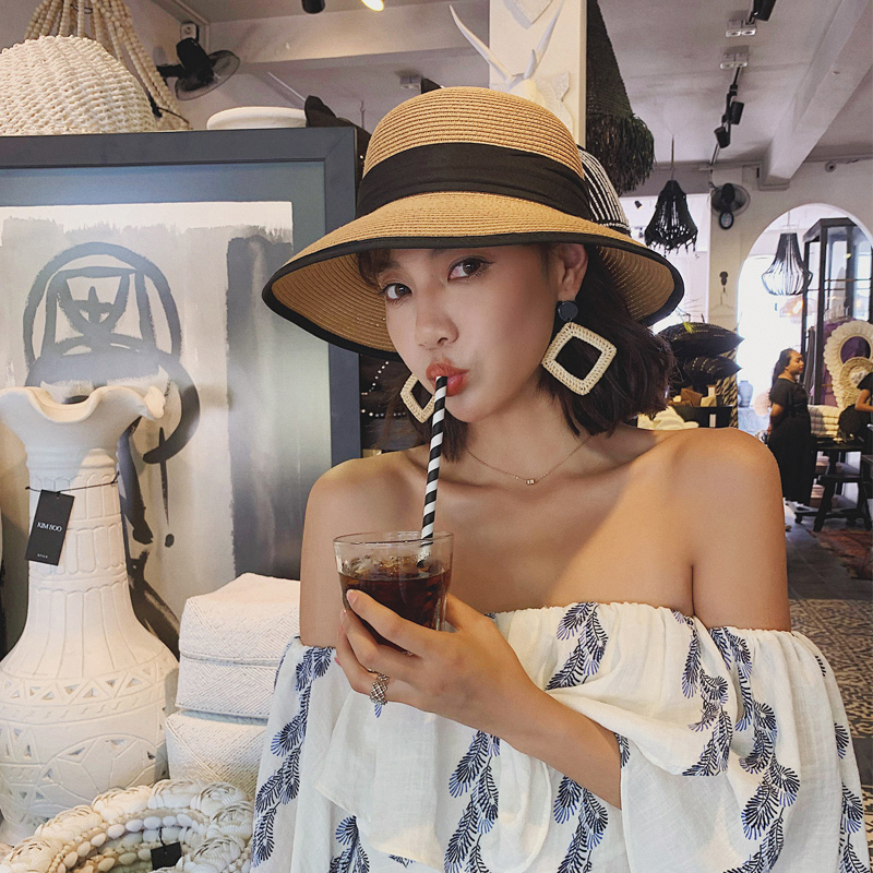 网红草编渔夫帽海边沙滩草帽出游度假遮阳防晒新款 太阳帽子女夏季