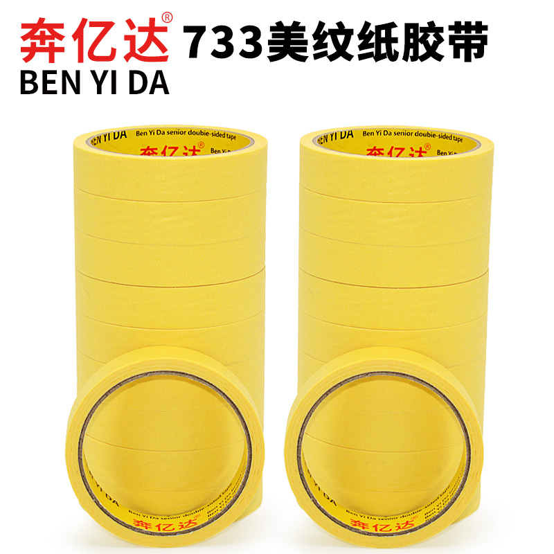 奔亿达美纹纸胶带耐高温无痕纸胶布带733黄色美缝和纸胶带外墙真石漆墙面装 修汽车喷漆遮蔽美术生专用分色纸