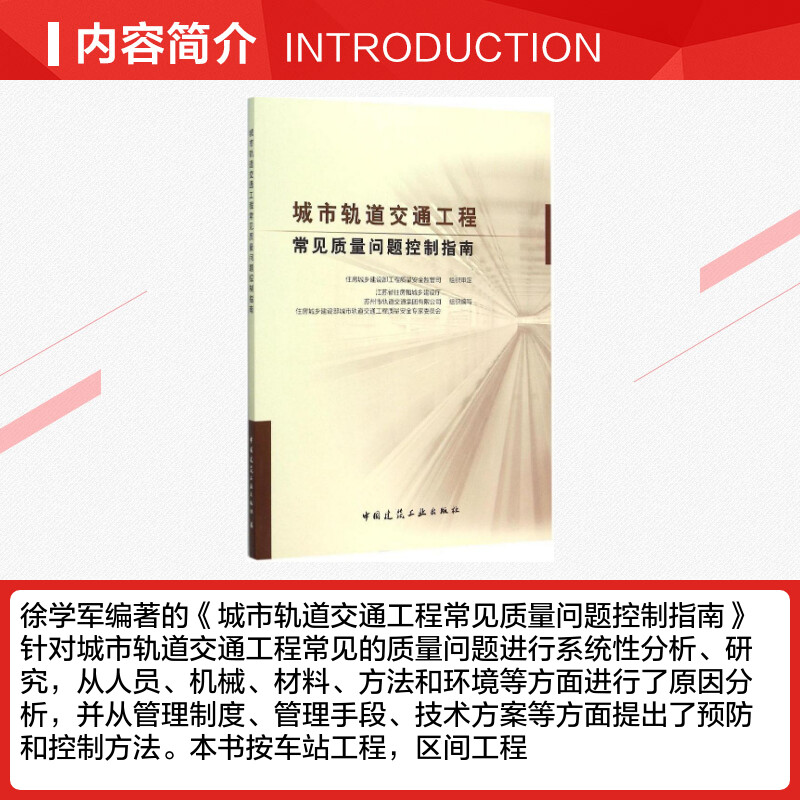 住房城乡建设部工程质量安全监管司 水利 组织审定 专业科技建筑 中国建筑工业 建筑学书籍 城市轨道交通工程常见质量问题控制指南