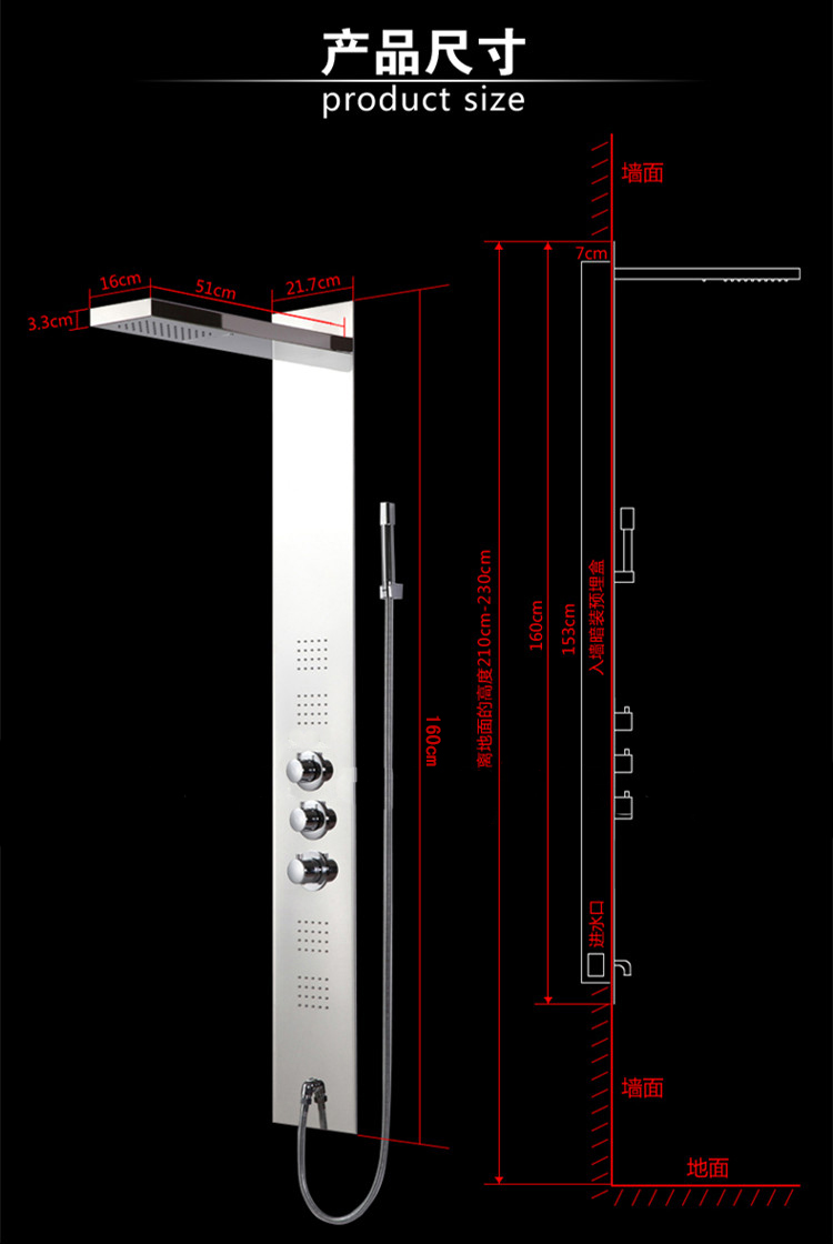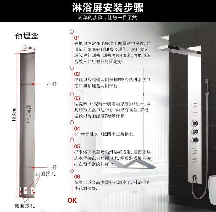 沐浴恒温淋雨瀑布淋浴屏套装 乔斯全铜龙头暗装 花洒预埋盒嵌入墙式
