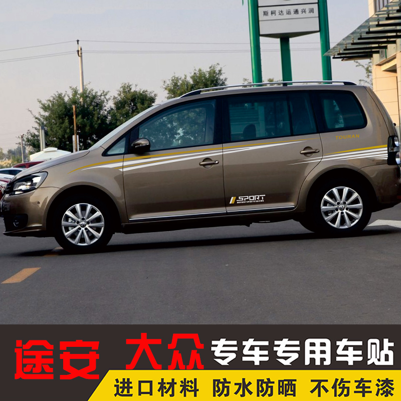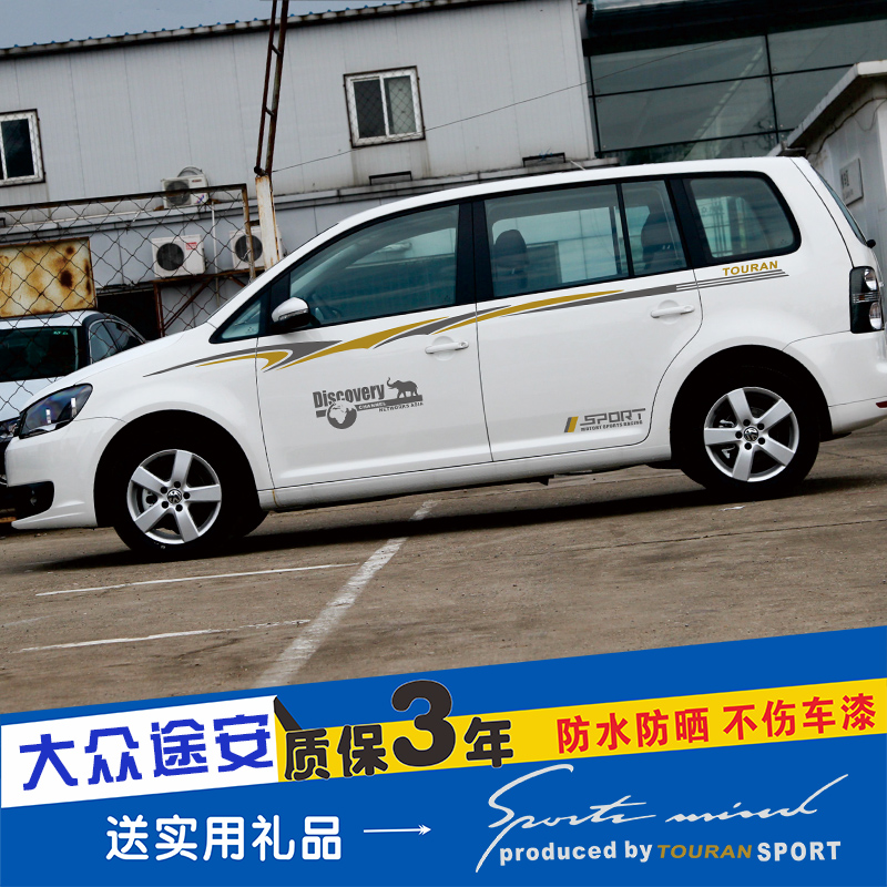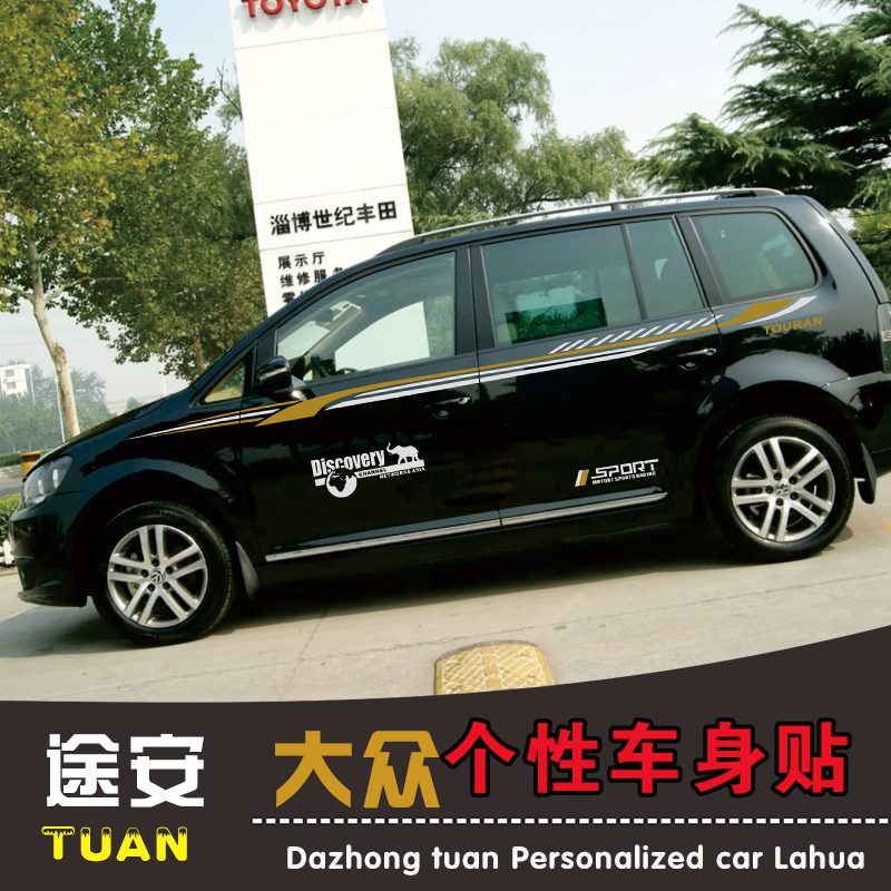 专用于大众途安改装 创意汽车拉花外饰品彩条 车身腰线车门车贴个性