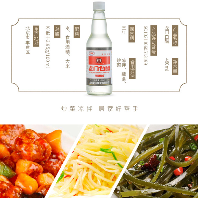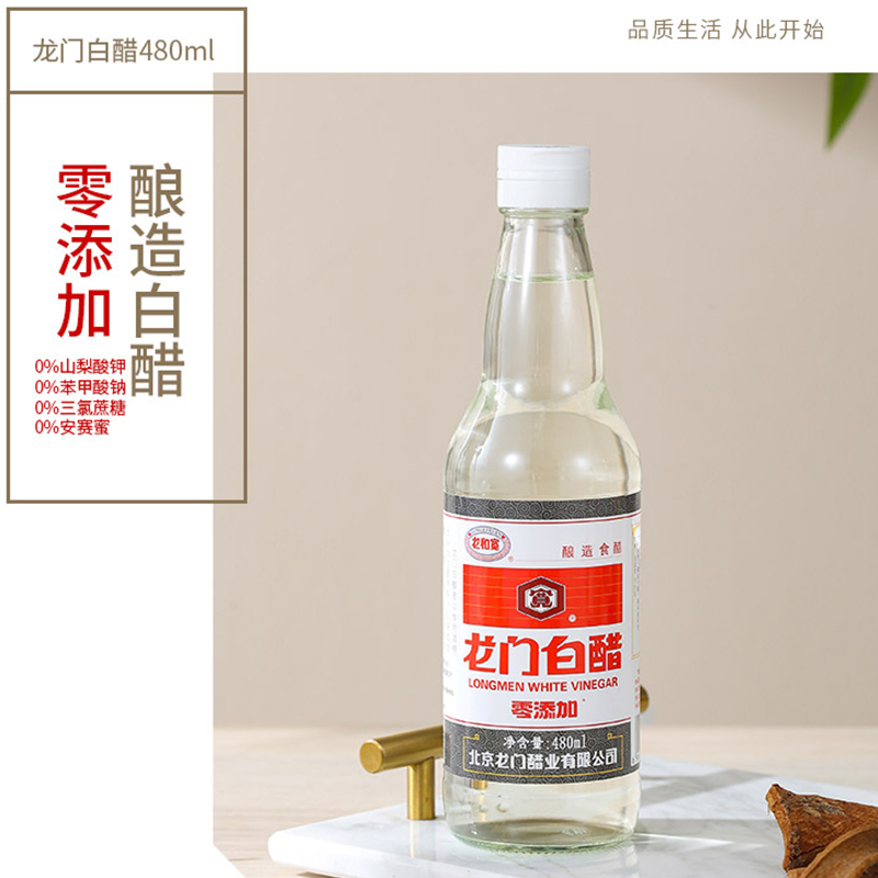 龙和宽牌酿造白醋480ml瓶装 家用酿造食醋炒菜凉拌洗脸除水垢泡脚