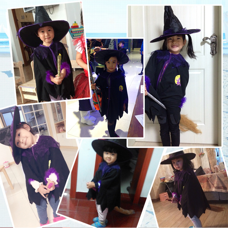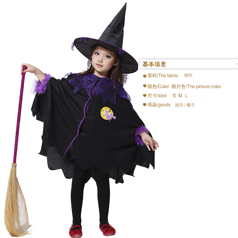 万圣节儿童服装 女童巫婆披风斗篷小女巫衣服cos幼儿亲子表演服女