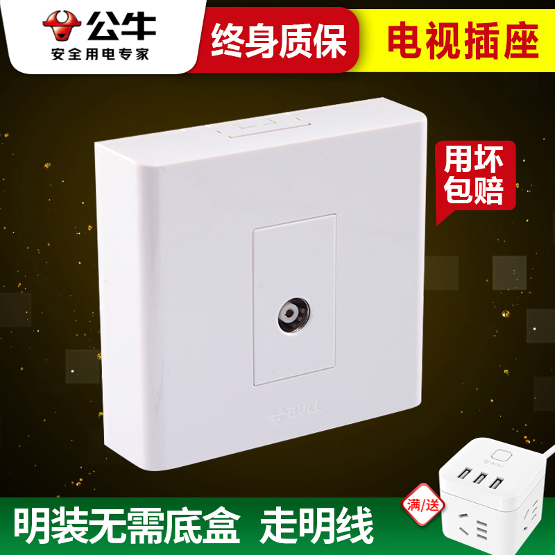 公牛明装 开关插座电视插座家用有线闭路明线盒tv有线电视插座面板