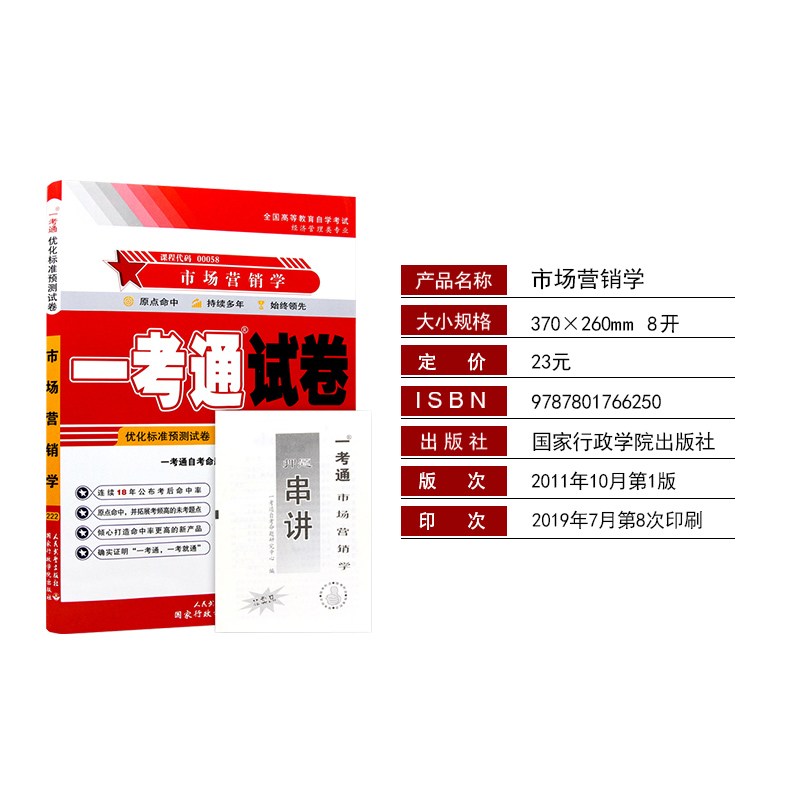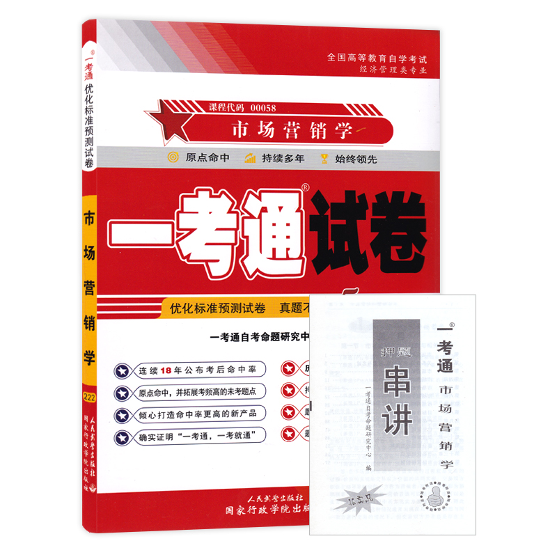 自考试卷00058 0058市场营销学一考通优化标准预测试卷押题串讲小抄掌中宝小册子自考工商管理专业试卷育成才自考书店