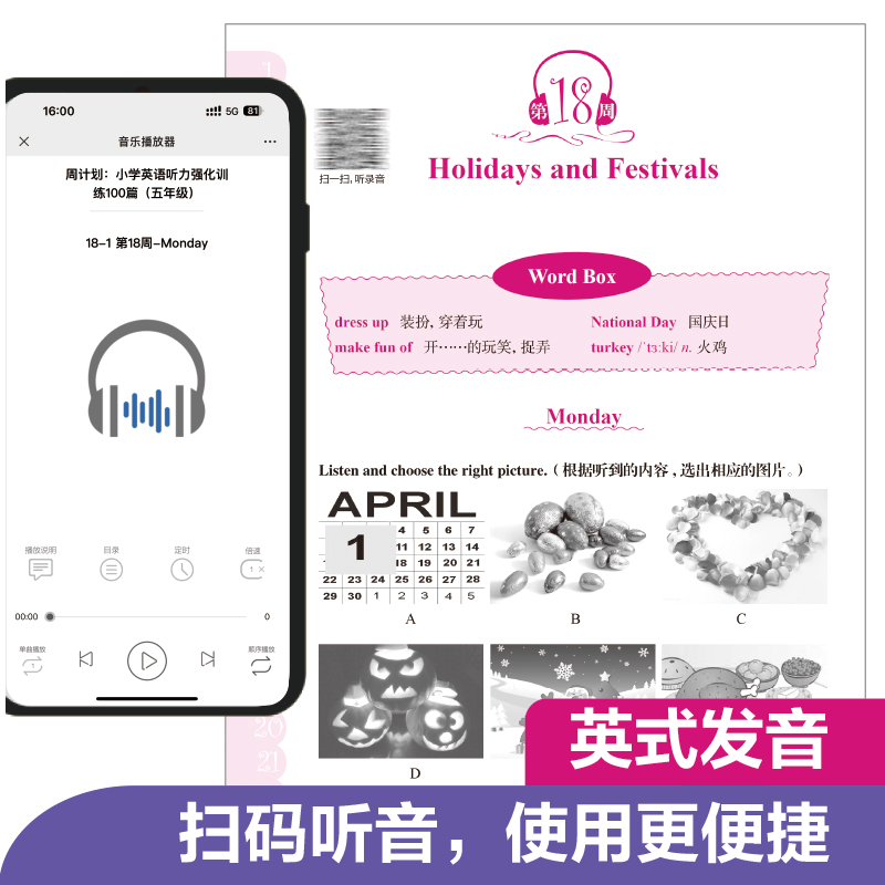 五年级 发音 紧扣考纲 音频英式 题型全面5年级英语听力专项训练 扫码 周计划小学英语听力强化训练