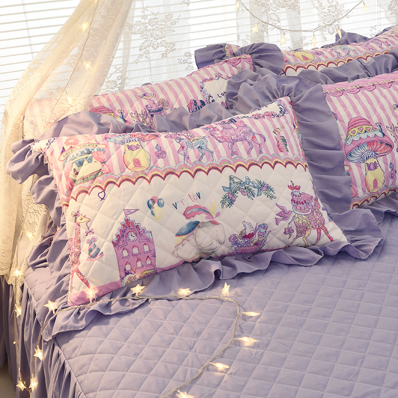 床上四件套床罩梦幻马戏团磨毛ins公主床裙花边夹棉床单被套床品