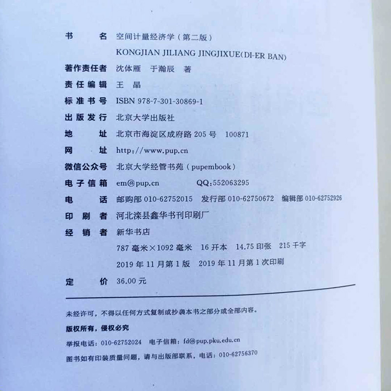 北京大学出版 第二版 社沈体雁于瀚辰9787301308691 空间计量经济学 正版