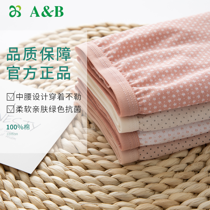 A&B女士纯棉中高腰抗菌内裤 女简约 舒适透气柔软不易变形妈咪内裤