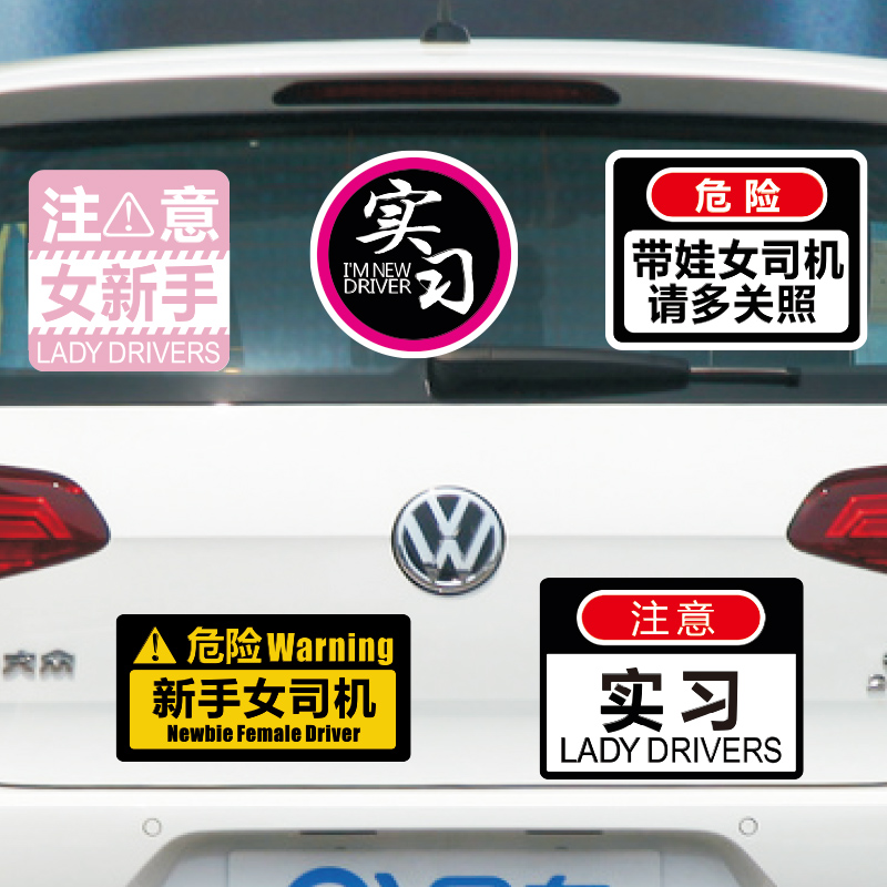 女司机车贴汽车实习标贴创意警示提示新手上路贴女司机实习标志贴