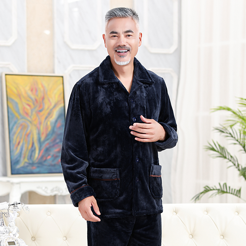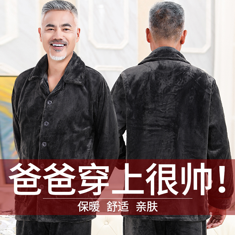 秋冬季 加绒加厚法兰绒爸爸居家服加肥加大 中老年人珊瑚绒睡衣男士
