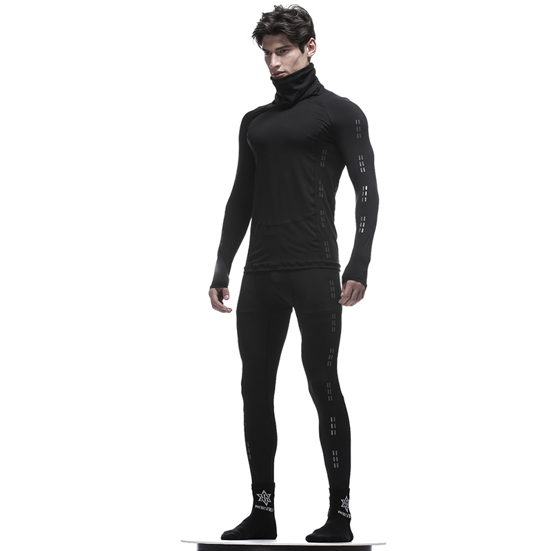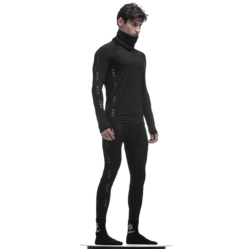 套装 黑色高领潮牌紧身潮流青年上衣长裤 男 男长袖 诺凡希春冬打底衫