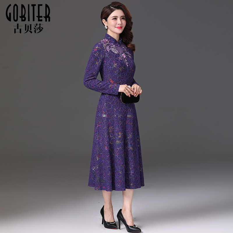 古贝莎春秋高端蕾丝旗袍领阔太太名媛气质妈妈装 连衣裙