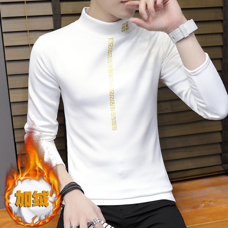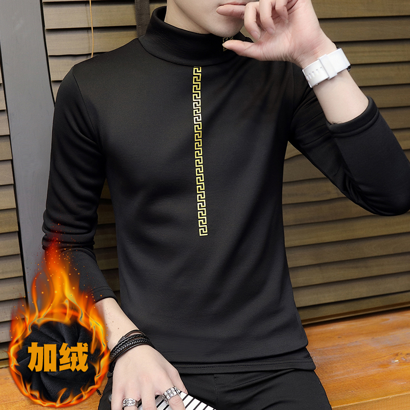 潮流上衣服保暖卫衣半高领打底衫 秋冬装 修身 长袖 加绒加厚t恤男士