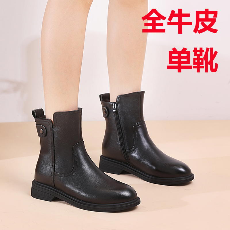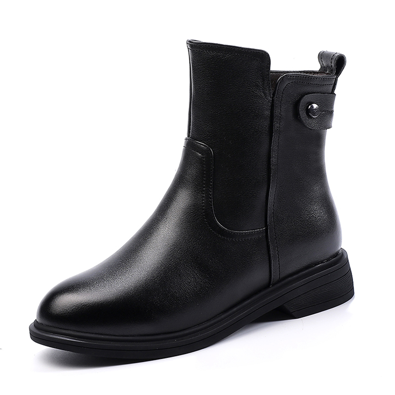 女鞋 羊毛皮毛一体短靴41一43大码 马丁靴女真皮加绒女靴女棉鞋 冬季