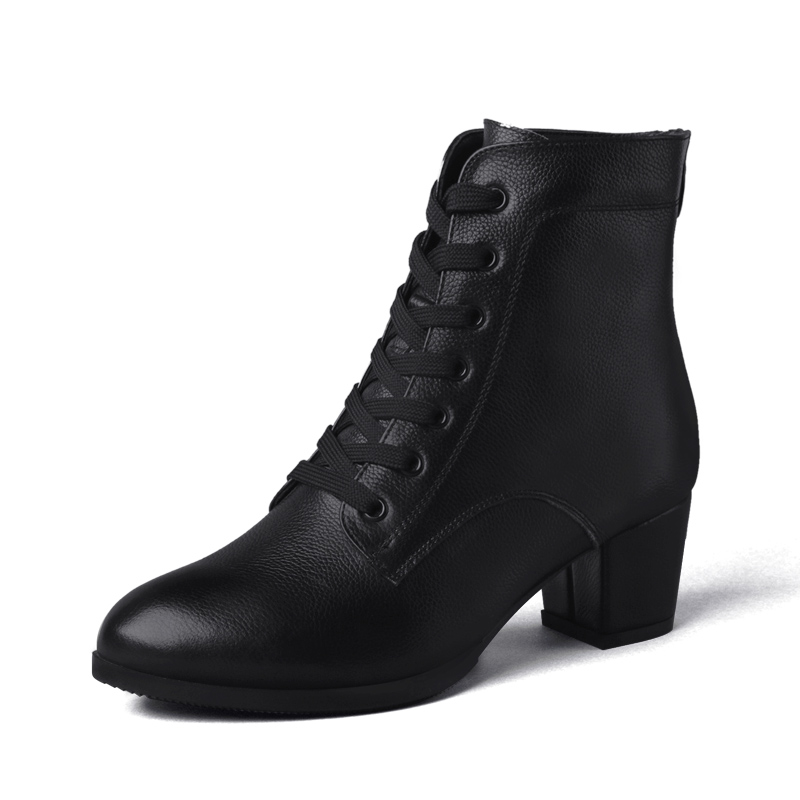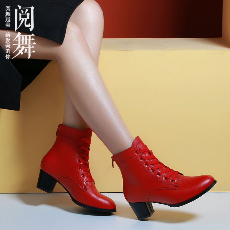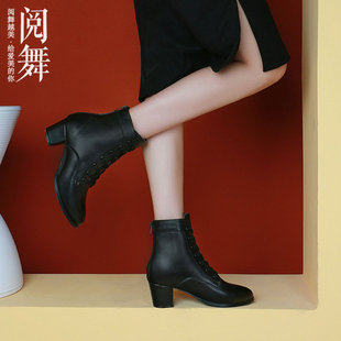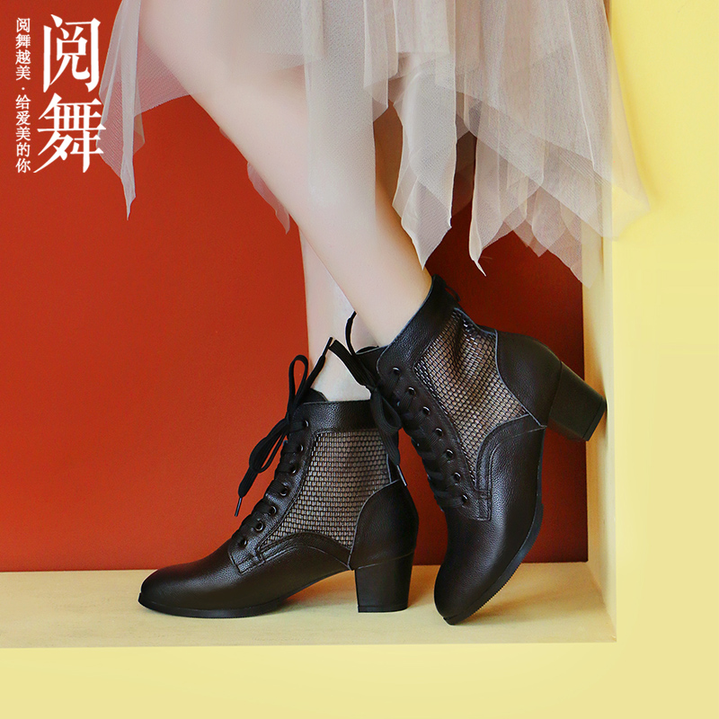 中跟水兵广场舞鞋 软底拉丁交谊跳舞鞋 短靴子 女新款 阅舞真皮舞蹈鞋