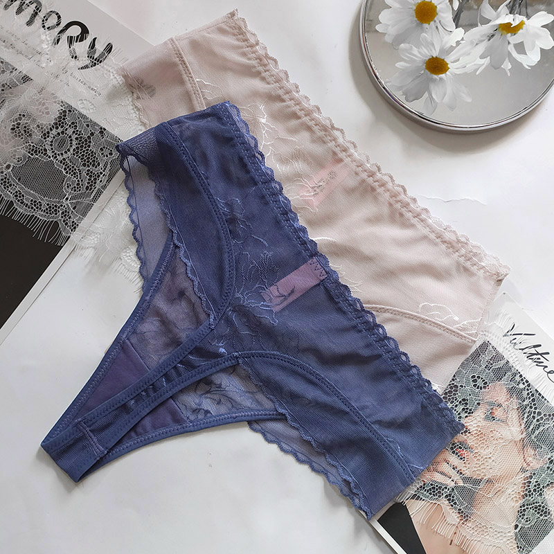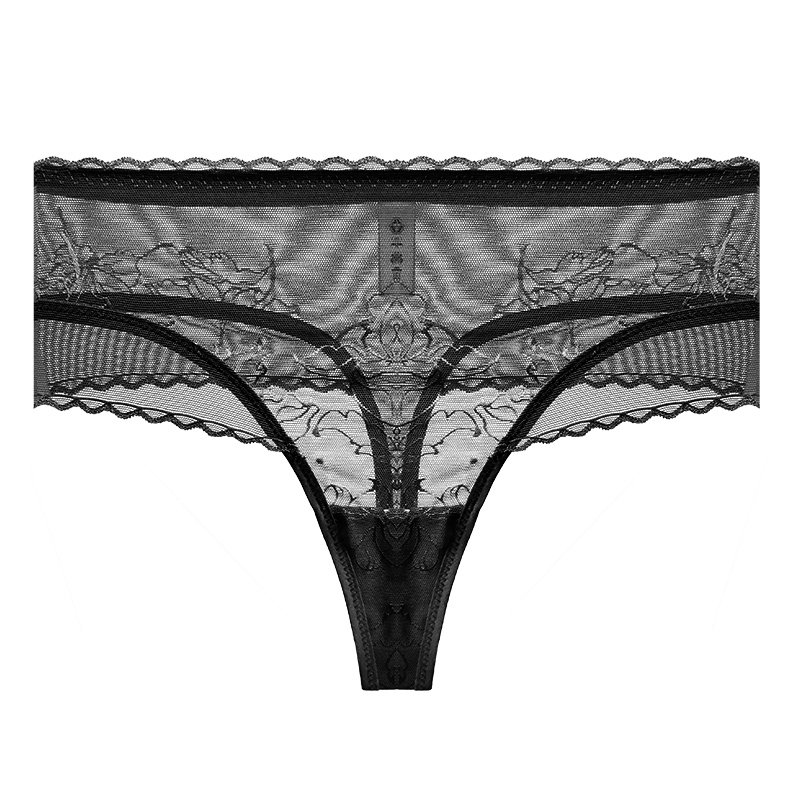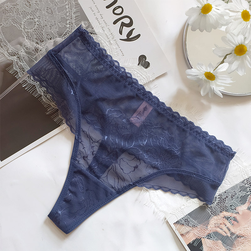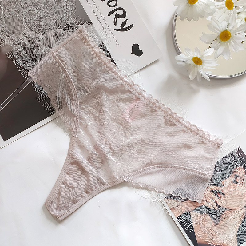 弹力无痕透明复古丁字裤 全蕾丝性感高腰T裤 收腹翘臀巴西小内裤